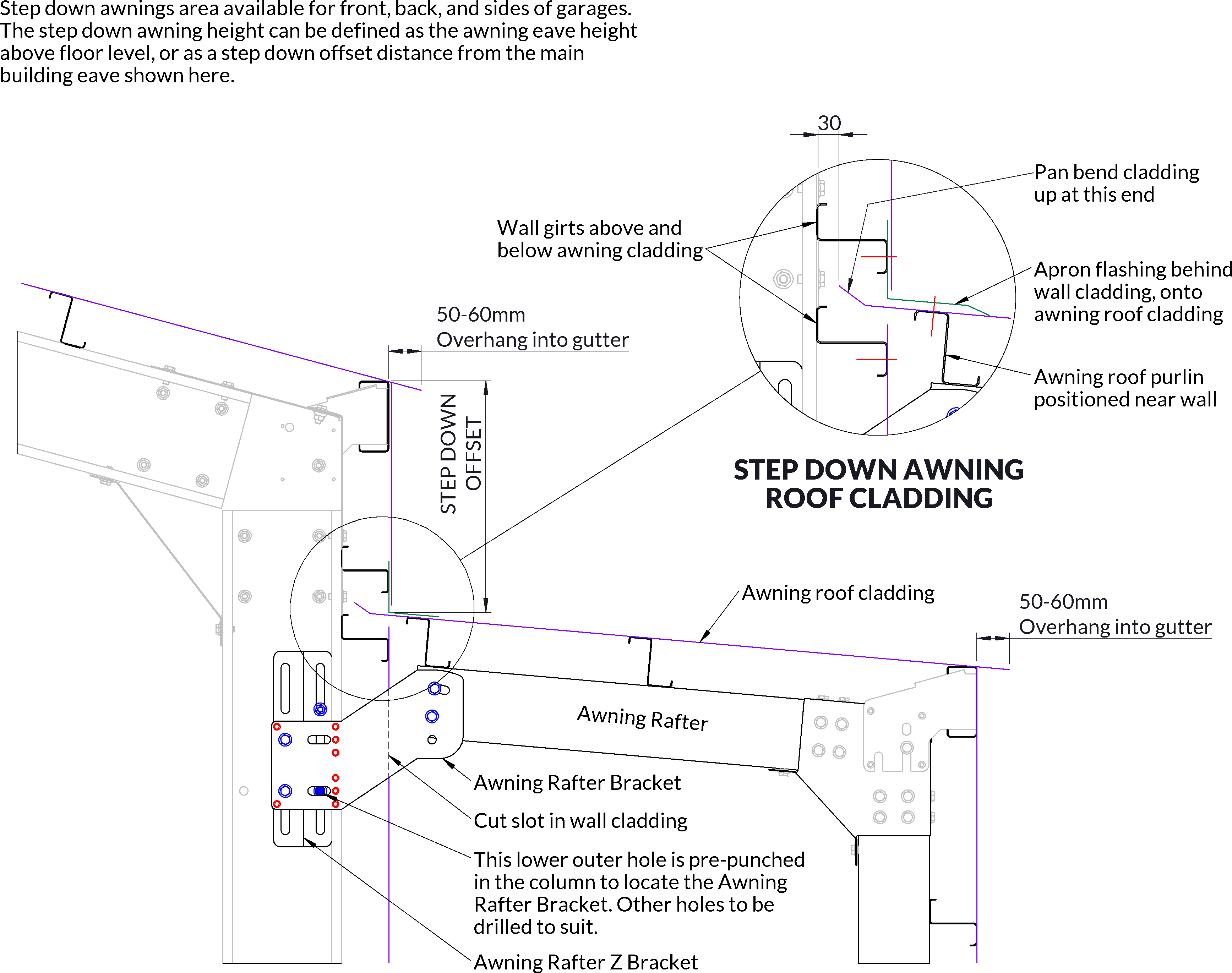 Stepdown Awning Rafter - Open Face Of Column